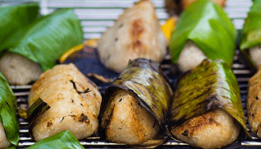 Nướng chuối nếp nướng bằng bếp than để tăng thêm hương vị
