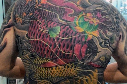 Nếu bạn là người có cá tính mạnh thì nên chọn hình xăm cá rồng kín lưng. Ưu điểm của mẫu xăm là diện tích rộng, dễ thao tác và đáp ứng mọi chi tiết bạn mong muốn.
