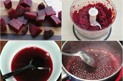 Tiếp theo, đun cách thuỷ nước củ dền cho đến khi dung dịch sánh quyện thì tắt bếp hoặc cho vào lò vi sóng.